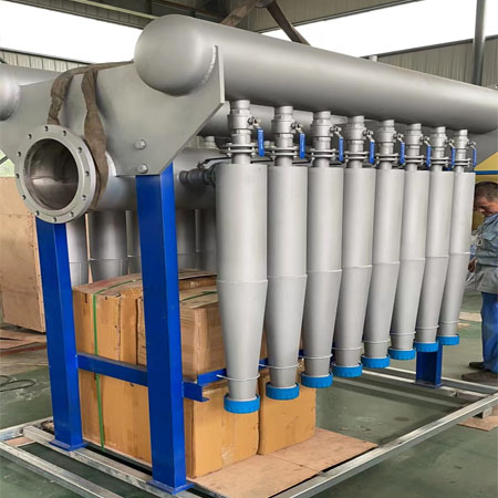 It consists of a tangent inlet, accepts outlet, cylindrical up-part with a plug-in deaeration tube, the middle part of the cone-type separate tube, nozzle or lower part of reject discharge controller, etc.