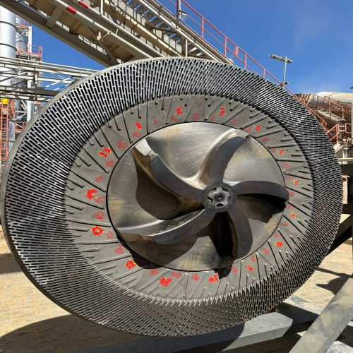 The refiner discs play a crucial role in the MDF manufacturing process by ensuring the uniformity and quality of the wood fibers. These discs typically have sharp edges or teeth that shred and refine the wood fibers, resulting in a smoother and more consistent material for the production of MDF panels.